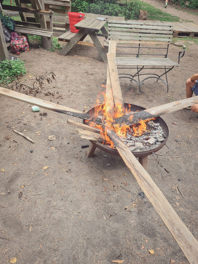 - am Lagerfeuer „kokeln“