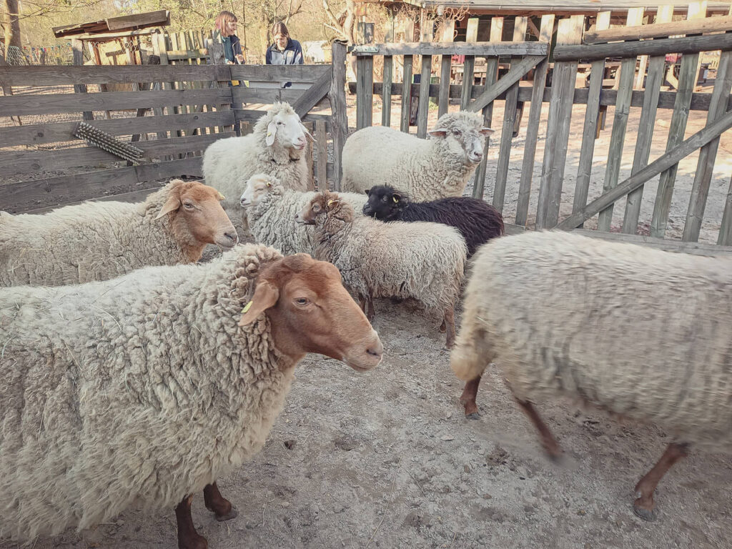Die Kinder dürfen – nach Absprache – allein zu den Schafen ins Gehege und das Tierteam unterstützen.