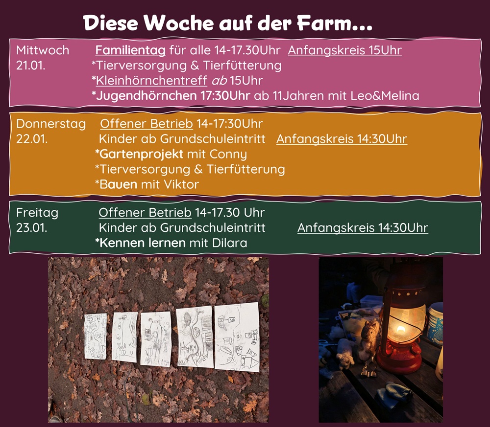 Die Farm ist wieder am 21.01.2026 ab 14 Uhr mit einem Familientag geöffnet.